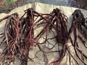 Rubia akane root dyeing, acid extraction and finishing, dyeing Akane red color